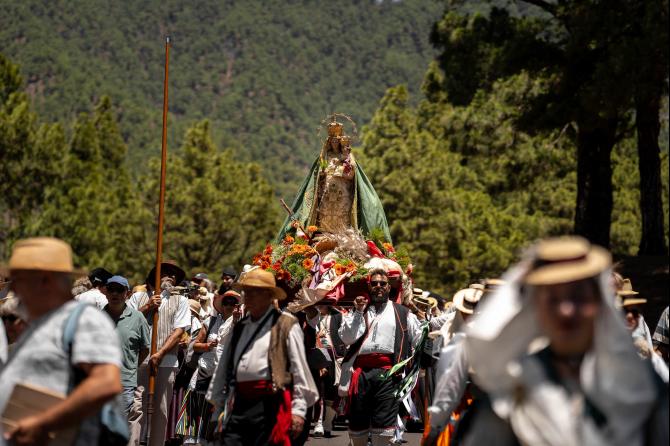 El evento comenzó al mediodía con la misa de romeros oficiada por el párroco Domingo Guerra, a la que asistió la Corporación de El Paso, encabezada por el primer edil, junto con otras autoridades insulares, entre las que se encontraba el presidente del Cabildo y exalcalde del municipio, Sergio Rodríguez. Como es tradicional, tras el repique de campanas se sucedía la ofrenda musical y de baile por parte de la Agrupación Folclórica Cumbre Nueva, para a continuación acompañar a la Sagrada Imagen durante el recorrido.