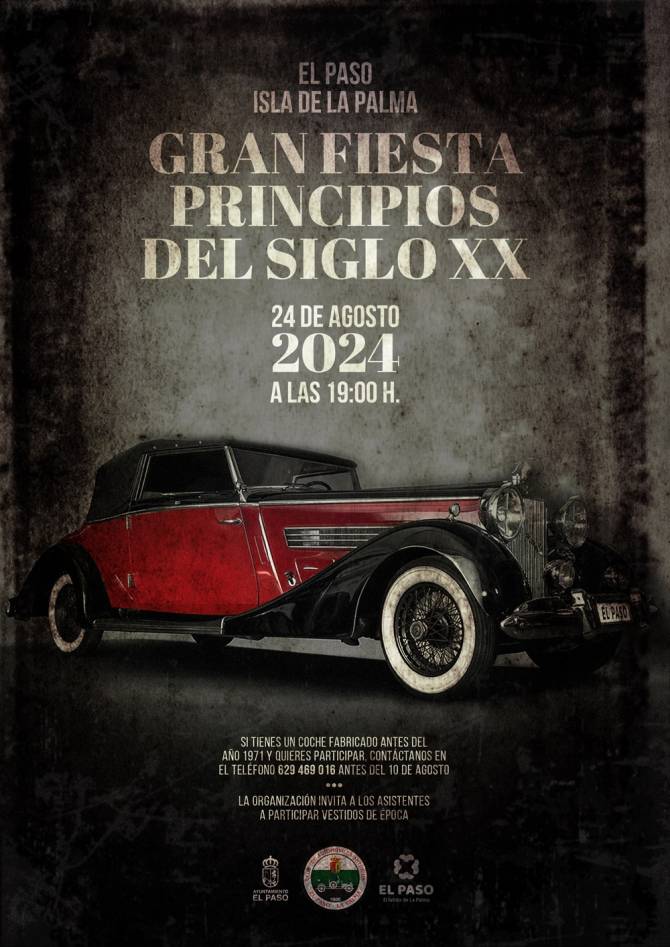 El Ayuntamiento de El Paso, en el marco de las Fiestas de la Bajada de la Virgen del Pino 2024, celebra la Gran Fiesta de Principios del Siglo XX. El evento, que tendrá lugar el sábado, 24 de agosto, transporta al municipio al pasado gracias a la buena música, vestidos de época y la joya de la corona: el desfile de más de 100 coches clásicos y antiguos del Club de Automóviles Antiguos ‘El Paso’.
