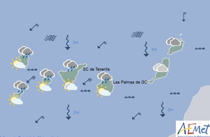 En la costa Suroeste, variable 3 y marejadilla, con mar de fondo del Noroeste aumentando de dos a tres metros.