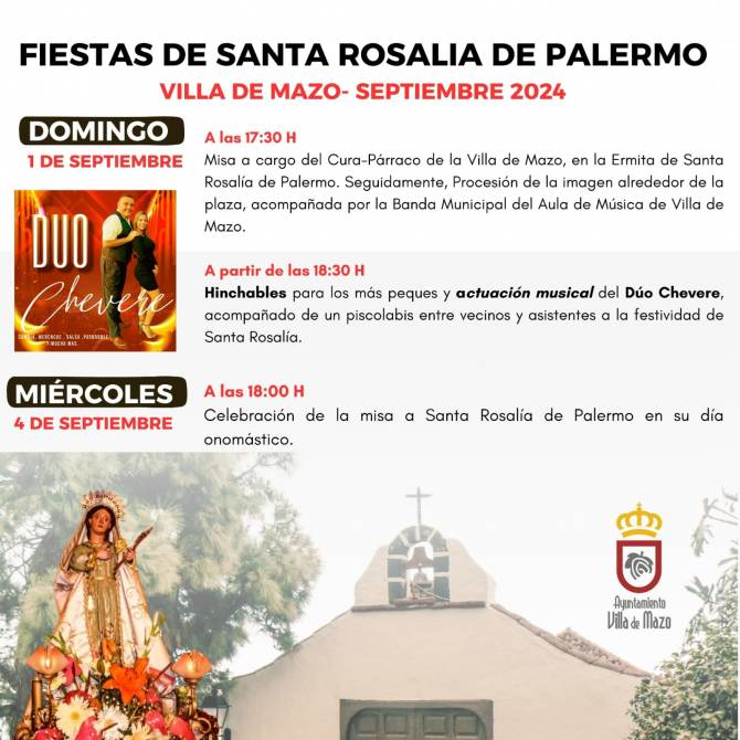 Villa de Mazo celebra las fiestas de Santa Rosalía de Palermo el 1 y el 4 de septiembre