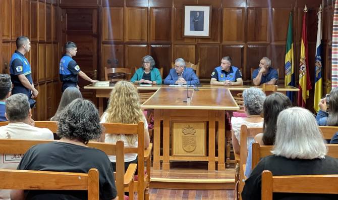El Ayuntamiento de la Villa de Garafía ha llevado a cabo el nombramiento de dos nuevos policías locales en prácticas, quienes pasarán a formar parte del personal funcionario del municipio, una vez finalizado el proceso formativo. Con estas incorporaciones, la plantilla de la Policía Local se verá reforzada, pasando de contar con un solo agente a disponer de tres efectivos, lo que permitirá mejorar significativamente la seguridad y cobertura en todo el territorio de Garafía.