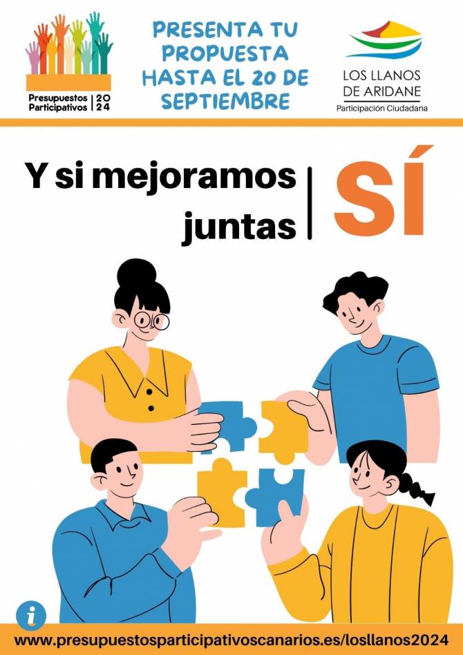 El Ayuntamiento de Los Llanos de Aridane mantiene abierto el plazo de presentación de propuestas para los Presupuestos Participativos de 2024. Dichas propuestas serán recogidas hasta el día 20 de septiembre.