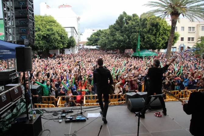 Más de 8.000 personas disfrutan del concierto en la Plaza de España de Los Llanos de Aridane.