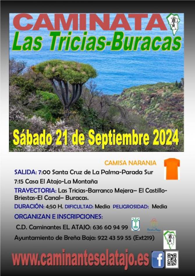El sábado 21 de septiembre, el C. D. de Caminantes "El Atajo" y la Concejalía de Deportes del Ayuntamiento de Breña Baja organizan, dentro del Programa de Senderismo de Breña Baja, la caminata nº 898 "Las Tricias - Buracas", en el municipio de la Villa de Garafía.
