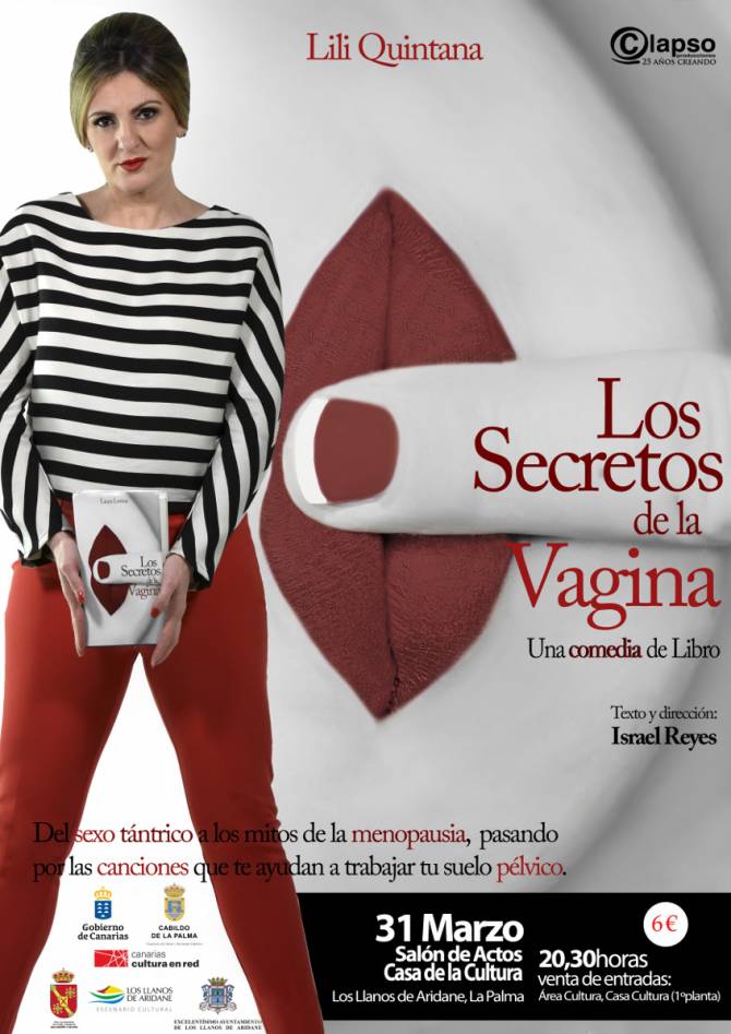 La Consejería de Cultura del Cabildo de La Palma llevará los próximos días viernes 31 de marzo y sábado 1 de abril a las Casas de la Cultura de Los Llanos de Aridane y de San Andrés y Sauces respectivamente la propuesta, escénica Los secretos de la vagina. La comedia caberetera que protagoniza la actriz Lili Quintana se podrá ver en ambos municipios en una única función que tendrá lugar a partir de las 20:30 horas.