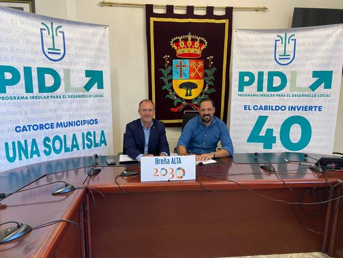 El Plan Insular de Desarrollo Local (PIDL), impulsado con fondos del Cabildo de La Palma, permitirá la mejora de los espacios deportivos del municipio de Breña Alta. A través del convenio suscrito por el alcalde del municipio, Jonathan Felipe, y el presidente del Cabildo de La Palma, Sergio Rodríguez, se aportarán de fondos insulares un total de 651.646,16 euros para el desarrollo de este proyecto.