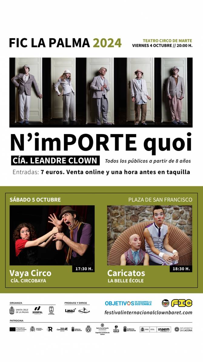 Santa Cruz de La Palma acogerá la próxima semana una nueva edición del Festival Internacional Clowbaret (FIC), una iniciativa que cumple su mayoría de edad ofreciendo a lo largo de estos años por toda Canarias una muestra del humor y la creatividad del arte del clown, el mimo y la palabra combinada con diferentes apuestas escénicas y circenses.