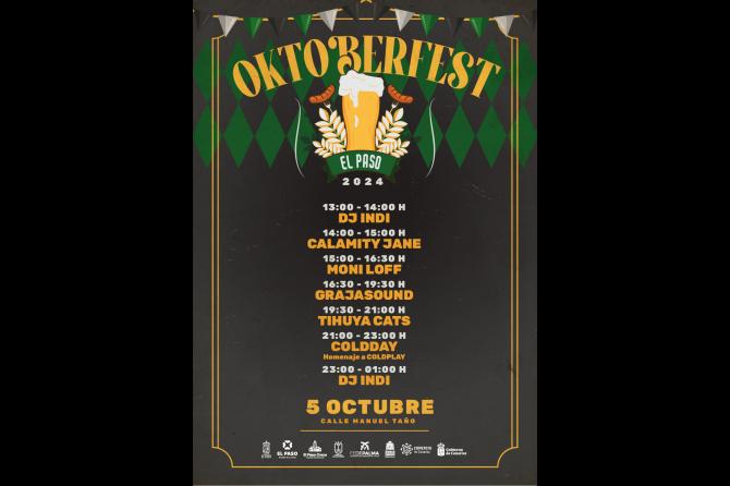 OktoberFest se ha consolidado en El Paso como una de las citas más importantes del otoño, contando en esta edición con más de 12 horas de música en directo. El plato fuerte será el concierto de la banda catalana Coldday, que ofrecerá su espectacular homenaje a Coldplay. Además, la fiesta contará con las actuaciones de DJ Indi, Calamity Jane, Moni Loff, Graja Sound y Tihuya Cats.