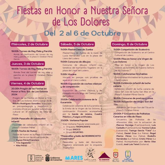 El Ayuntamiento de Villa de Mazo celebra esta semana sus Fiestas en Honor a Nuestra Señora de los Dolores, con el esperado Baile del Borrachito Fogatero como acto central.