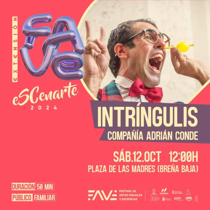 El Ayuntamiento de Breña Baja organiza e invita para el sábado 12 de octubre, 12 hs, en la Plaza de Las Madres de San José al acto de calle “Intríngulis”, a cargo de la Compañía de Adrián Gómez, especialmente pensado para un público familiar. Entrada libre.