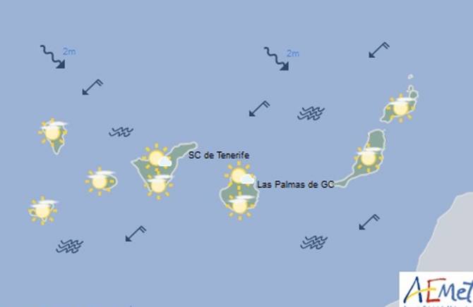 Las temperaturas sin cambios o en ligero ascenso, afectando principalmente a medianías, y situándose entre 22 y 16 grados centígrados.
