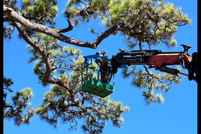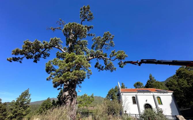 Por tal motivo, en el día de ayer se llevaron a cabo una serie de trabajos, a cargo de la empresa pública Gesplan, para el saneamiento y mejora de varias ramas de este longevo pino canario que se vio afectado por los fuertes vientos que hubo en la zona a mediados del pasado mes de septiembre, después de que el propio ayuntamiento de El Paso en primera instancia informó y realizó las primeras acciones de prevención para los visitantes a la zona.