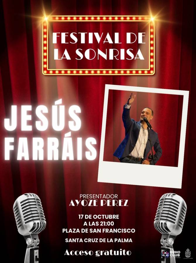 El Ayuntamiento de Santa Cruz de La Palma, a través de la concejalía de Fiestas que dirige Raico Arrocha, organiza este jueves, 17 de octubre, la segunda sesión del ciclo de humor 'Festival de la Sonrisa'.