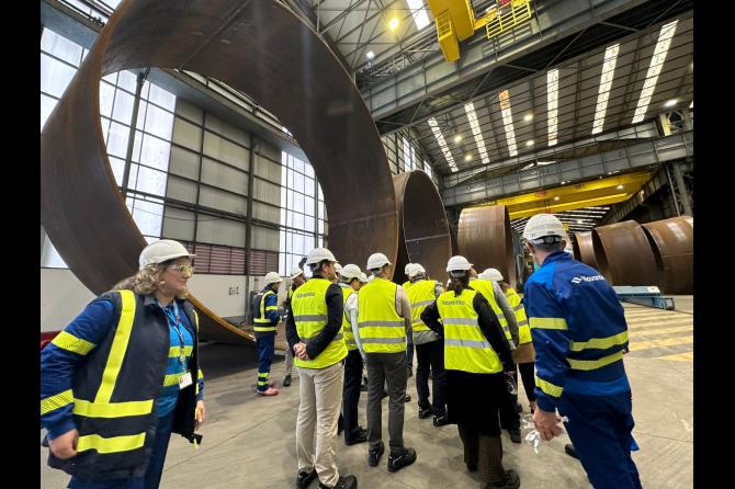 Este viernes, el grupo ha visitado el astillero de Fene de Navantia Seanergies, la división de energías verdes de la empresa pública Navantia. Allí han sido recibidos por el director de Cimentaciones y Plataformas Off-Shore de Seanergies y director del astillero de Fene, Manuel Bermúdez de Castro; el jefe de programa de plataformas flotantes, Carlos Pascual; y el responsable comercial de monopiles y de estrategia competitiva, Ángel Fernández. Se les hizo una presentación para explicar la trayectoria de Seanergies en la eólica marina y la transformación del astillero para adaptarse a las demandas del sector. Navantia, como empresa con una década de experiencia en eólica marina y pionera en plataformas flotantes, aporta su conocimiento para el despliegue en España. Bermúdez de Castro quiso aplaudir la presencia de la delegación canaria. "Estamos ante una oportunidad de país y de Canarias en donde Navantia Seanergies es tractora y tiene el compromiso de apoyar a la industria canaria para el desarrollo de la eólica marina en la zona", ha concluido.