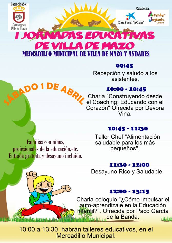 El Ayuntamiento de Villa de Mazo y Aprender Jugando impulsan las I Jornadas Educativas, un encuentro que tendrá lugar este sábado, 1 de abril, a partir de las 9:45 horas, y en el que se desarrollará un taller de cocina y dos charlas dirigidas a familias y profesionales relacionados con el ámbito educativo.
