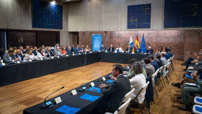 El presidente de Canarias, Fernando Clavijo, presidió el encuentro celebrado este martes, 22 de octubre, acompañado de la consejera de Universidades, Ciencia e Innovación y Cultura, Migdalia Machín, con el triple objetivo de informar acerca de las próximas acciones previstas por el Gobierno de Canarias dirigidas al sector aeroespacial en Canarias, constituir la Comunidad RIS3 CAN de Industria de Astrofísica, Espacio y Aeronáutica, así como compartir visiones e identificar oportunidades, sinergias y proyectos estratégicos.