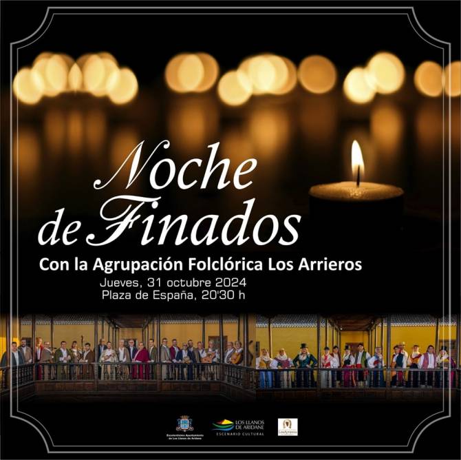 El Ayuntamiento de Los Llanos de Aridane celebra la Noche de Finados con una actuación de la Agrupación Folclórica Los Arrieros, la cual actuará junto a la actriz Belén Herrero. El espectáculo, que combina música, teatro, danza y folclore, tendrá lugar el jueves, 31 de octubre, a las 20:30 horas en la Plaza de España.