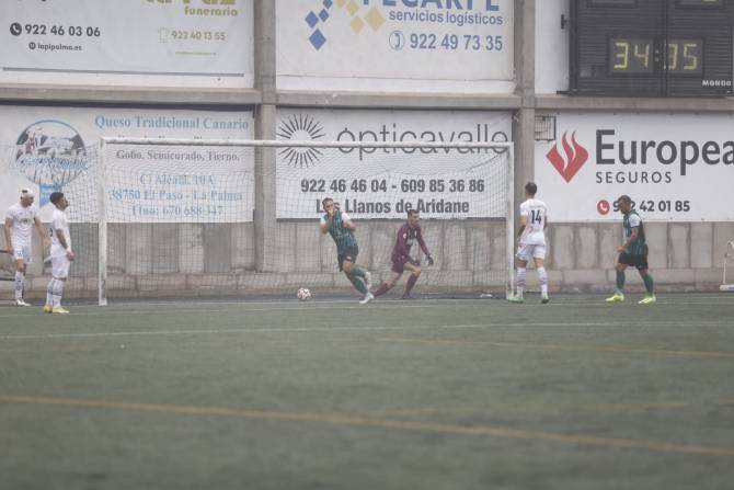 Incursión por el carril izquierdo del capitán Armiche, centro al segundo palo donde Barreda, de cabeza y libre de marca, adelanta al Atlético Paso. Gol celebrado con mucha rabia, tanto en el campo como en las gradas del feudo palmero.