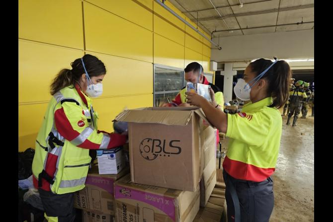 El dispositivo de emergencias de Canarias logra habilitar una zona para la instalación del banco de alimentos en Valencia