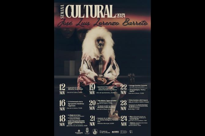 La Semana Cultural, que ha contado con el apoyo del Instituto Canario de Desarrollo Cultural (ICDC), organismo de la Consejería de Cultura del Gobierno de Canarias, y el Cabildo de La Palma, así como con la colaboración de la Asociación Cultural José Luis Lorenzo Barreto, comenzará el 12 de noviembre, con el espectáculo teatral Mararía, la de Femés a las 20:00 horas en la Casa de la Cultura. En el mismo lugar, el 16 de noviembre a las 19:30 horas, la Agrupación Folclórica Tagomate celebrará su 52 aniversario.