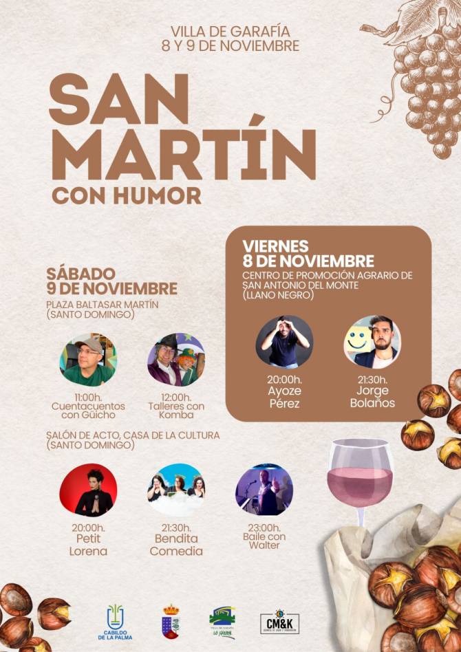 La Villa de Garafía se prepara para vivir un fin de semana lleno de risas y tradición con la celebración de San Martín con Humor, una programación especial que traerá a humoristas de renombre de Canarias y una variedad de actividades para todos los públicos. La celebración se extenderá los días 8 y 9 de noviembre en dos emblemáticos espacios del municipio: San Antonio del Monte y Santo Domingo.