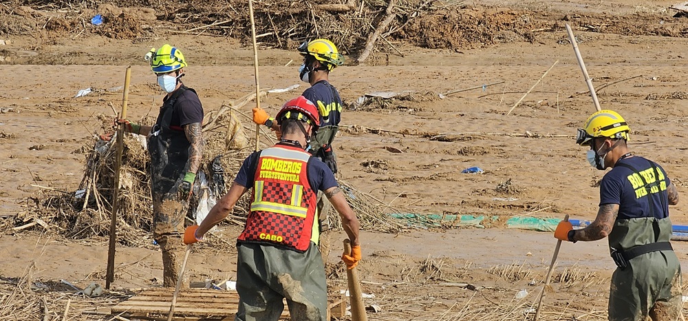 Por su parte, el grupo de bomberos movilizado desde Fuerteventura, que se unió hoy al dispositivo canario junto a los relevos de los consorcios de Bomberos de Tenerife y Gran Canaria, rastrea palmo a palmo un sector de La Albufera para localizar a personas desaparecidas. El grupo sigue las indicaciones que le van dando un equipo de Bomberos de Valencia.