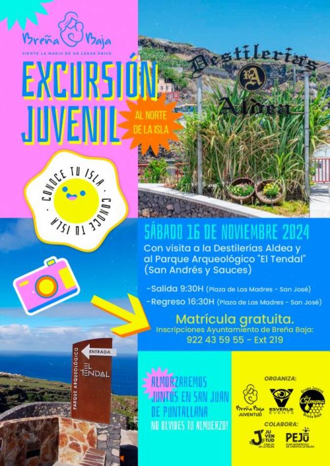 La Concejalía de Juventud del Ayuntamiento de Breña Baja conjuntamente con los colectivos juveniles del municipio organizan una excursión juvenil al norte de la isla el sábado 16 de noviembre. Con la colaboración del área de juventud del Cabildo Insular de la Palma. Actividad gratuita y plazas limitadas.