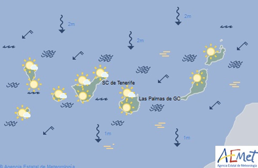 Las temperaturas permanecerán con pocos cambios, salvo ligero descenso en medianías y zonas altas, situándose entre los 24 y los 18 grados centígrados.
