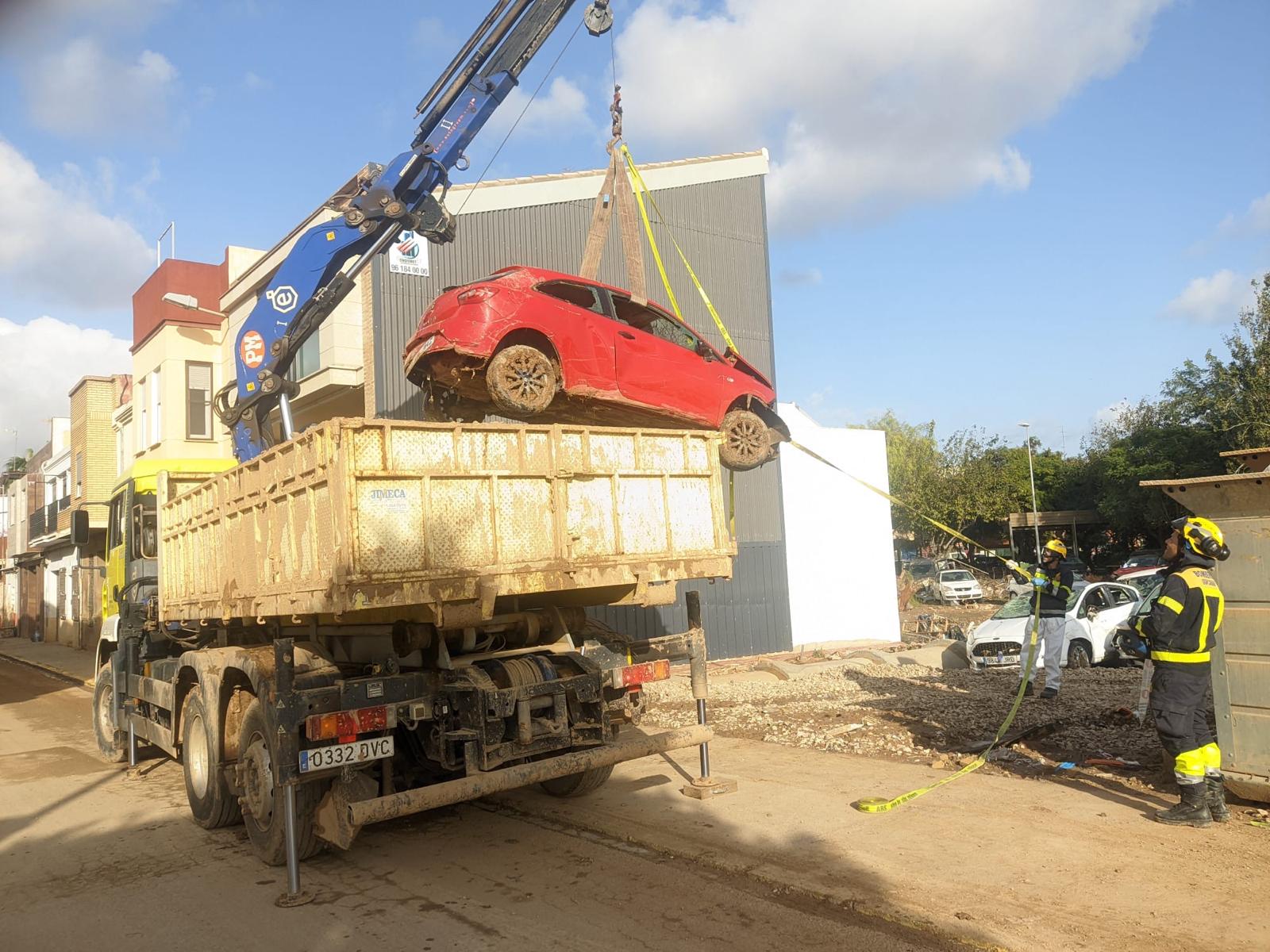 Además, uno de los grupos de trabajo integrado por los bomberos se centró en la retirada de vehículos que continúan obstaculizando las vías de estas dos localidades valencianas en coordinación con la policía local.