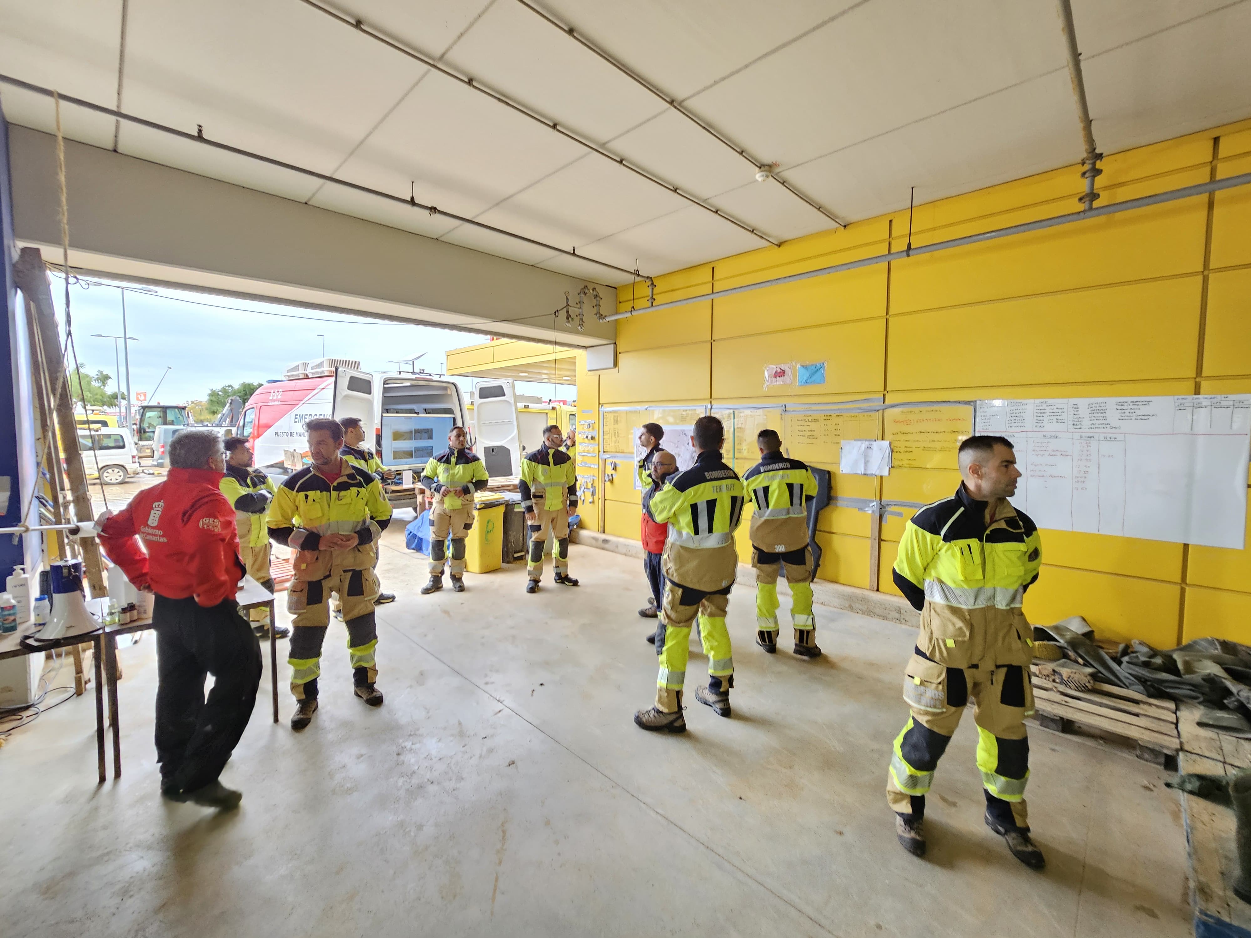 La jornada de este sábado arrancó con la organización de todo el material necesario para realizar los trabajos encargados por el mando operativo del Puesto de Mando Avanzado (PMA) de Valencia.