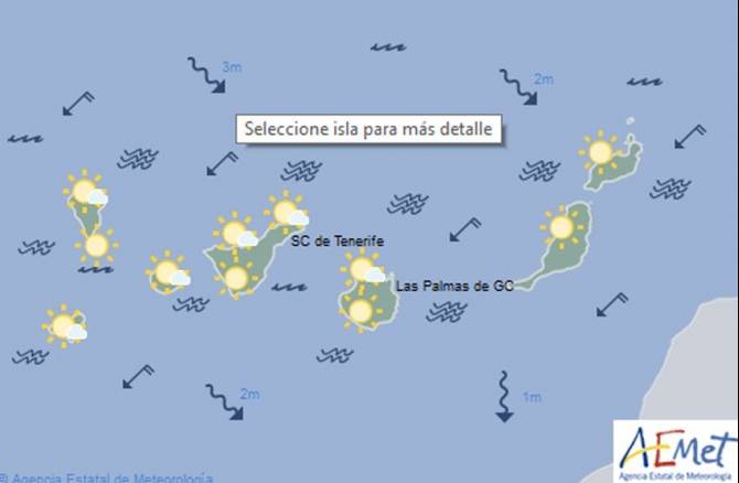 Las temperaturas seguirán con pocos cambios, salvo ligero descenso en medianías y zonas altas, situándose entre los 23 y los 18 grados centígrados.