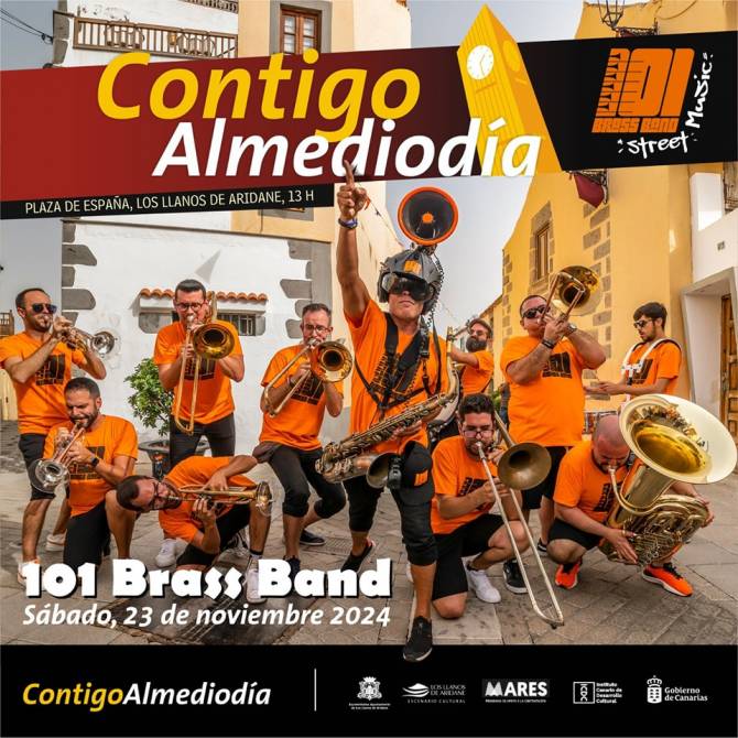 El Ayuntamiento de Los Llanos de Aridane celebrará este sábado, 23 de noviembre, una nueva edición de Contigo Almediodía. A partir de las 13:00 horas, la Plaza de España será escenario de la actuación de la '101 Brass Band', una agrupación musical que promete llenar el centro del municipio de energía y diversión.