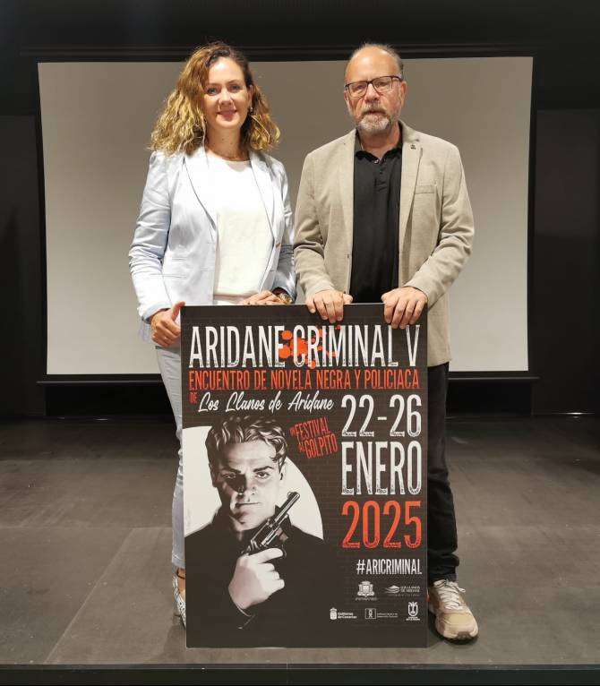 Los Llanos de Aridane acogerá del 22 al 26 de enero de 2025 la quinta edición de Aridane Criminal, un festival que celebra la literatura negra y policíaca con la participación de 16 autores, entre escritores, cineastas, guionistas e ilustradores.