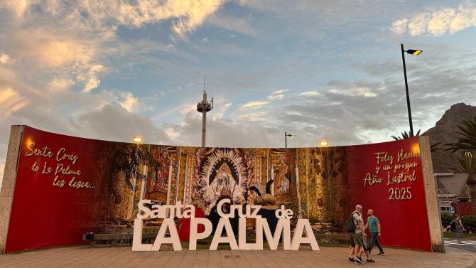 El Ayuntamiento de Santa Cruz de La Palma ha estrenado la imagen panorámica de grandes dimensiones del kilómetro cero de la capital palmera de estas fiestas, cuya ubicación se encuentra junto al puerto capitalino.