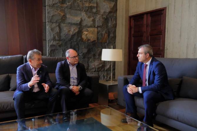El vicepresidente y consejero de Economía, Industria, Comercio y Autónomos del Gobierno de Canarias, Manuel Domínguez, se reunió este jueves, en la sede de Presidencia de Santa Cruz de Tenerife, con directivos del Grupo Armas Trasmediterránea para conocer el plan de conectividad, para pasaje y carga, de esta compañía de cara al 2025.
