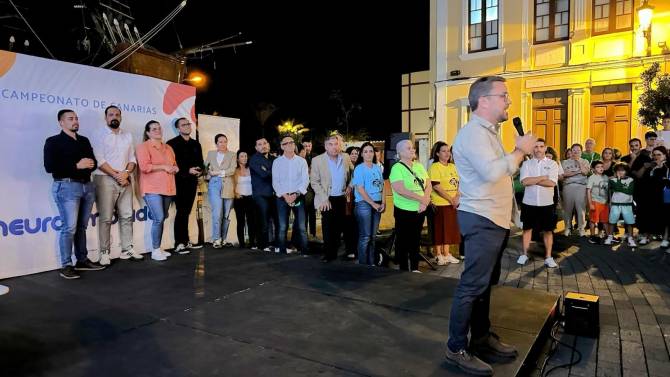 La plaza de La Alameda fue el punto de encuentro de esta jornada inaugural donde participantes y autoridades de las diferentes administraciones dieron la bienvenida a los equipos, tras las palabras del alcalde capitalino Asier Antona, la concejal de Bienestar Social, Yéssica Pérez; el consejero de Deportes del Cabildo palmero, Yurguen Hernández, y el viceconsejero de la Actividad Física y del Deporte del Gobierno de Canarias, acto en el que también estuvo presente la directora general de Deportes Autóctonos del Ejecutivo regional, Lorena Hernández, y demás representantes municipales de las Islas. En esta competición participan equipos de las islas de Tenerife, Fuerteventura y La Palma quienes disputarán las dos pruebas definitivas para el título regional de las NeurOlimpiadas Canarias este sábado 30 de noviembre y el domingo 1 de diciembre en la ciudad deportiva de Miraflores.