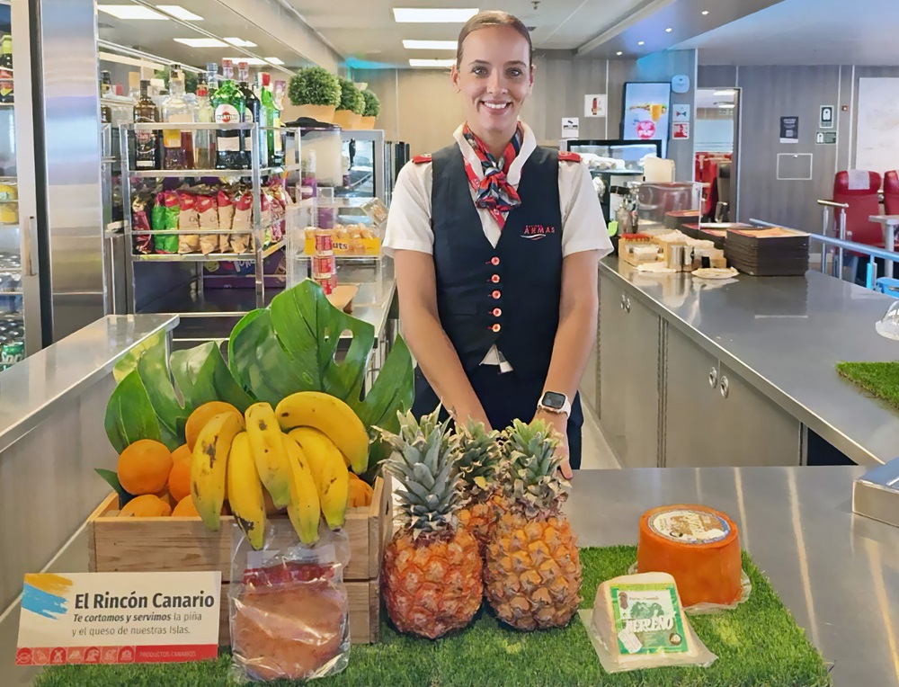 Armas Trasmediterránea (armastrasmediterranea.com), única naviera que conecta todas las islas, renueva su menú a bordo dando un protagonismo especial al producto canario y kilómetro cero. La nueva carta en las cafeterías de sus buques incluye tapas de queso, piña de El Hierro, plátano de Canarias y bocadillo de mechada, entre otras opciones, que estarán disponibles en todas sus rutas entre islas.