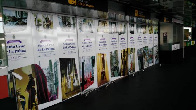El Ayuntamiento de Santa Cruz de La Palma cuenta desde el día de hoy con una campaña promocional en el aeropuerto de la isla con el objetivo de invitar a conocer la Semana Santa capitalina a los miles de viajeros que está previsto que lleguen a la isla en estas fechas.