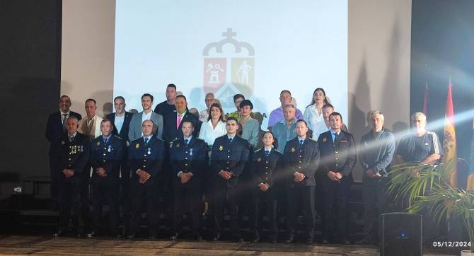 Durante el acto, se entregaron medallas al mérito policial con distintivo blanco y azul a varios agentes, así como algunas menciones especiales a efectivos que, aunque actualmente sirven en otras localidades de Canarias, desempeñaron un papel clave en Tazacorte.