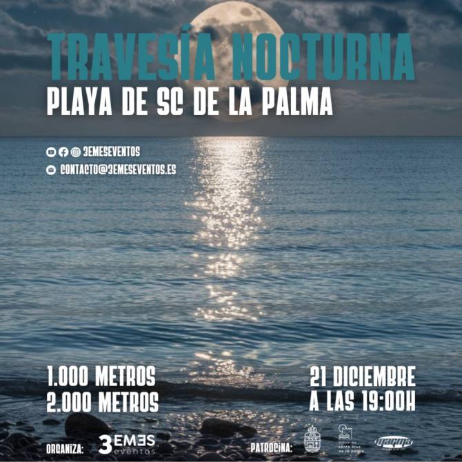 El Ayuntamiento de Santa Cruz de La Palma, a través de la concejalía de Playa, coordinada por Omaira Pérez, organiza el sábado 21 de diciembre, la segunda edición de la Travesía a Nado Nocturna en la playa de la capital palmera.