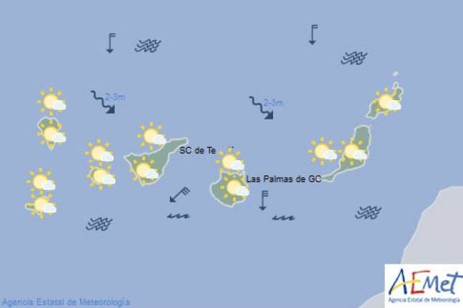 Las previsiones meteorológicas apuntan a un ligero descenso de las temperaturas en la Isla para la jornada de este jueves, más acusados en medianías y zonas altas, situándose entre 22 y 15 grados centígrados