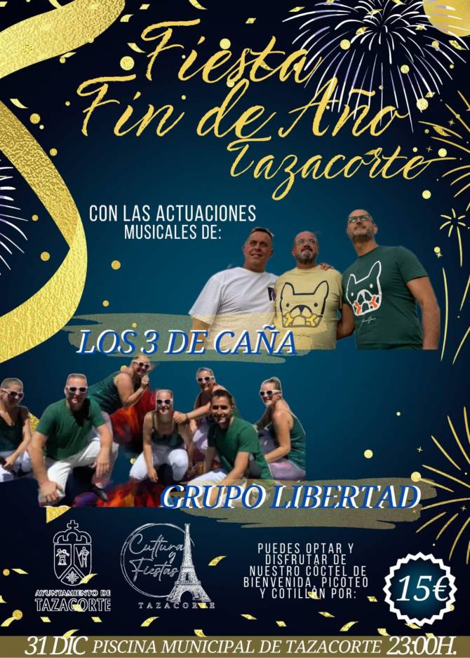 El Ayuntamiento ha organizado una velada especial que promete música, diversión y buen ambiente para despedir el 2024. Las orquestas Los 3 de Caña y Grupo Libertad serán las encargadas de animar la noche, garantizando que los asistentes puedan bailar y disfrutar hasta bien entrada la madrugada del inicio del nuevo año.
