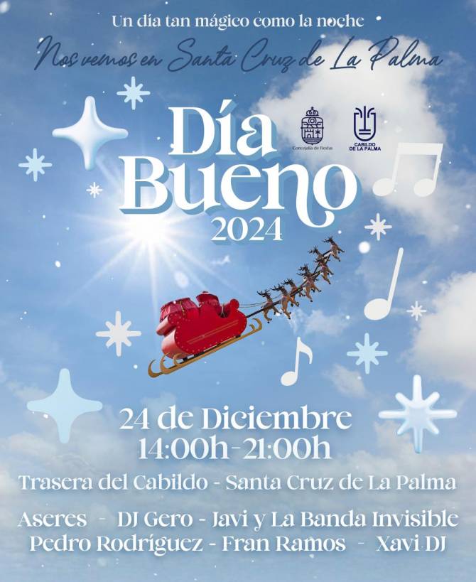 El Ayuntamiento de Santa Cruz de La Palma, a través de la concejalía de Fiestas que coordina Raico Arrocha, celebra el 24 de diciembre con la primera edición de 'Día Bueno', una iniciativa para dinamizar la tarde de la antesala de la Nochebuena.