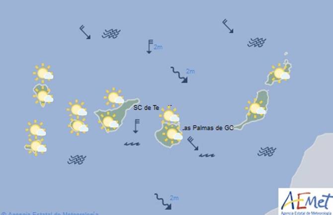 Las temperaturas sin cambios, salvo ligero descenso en medianías y zonas altas, situándose entre 21 y 17 grados centígrados.