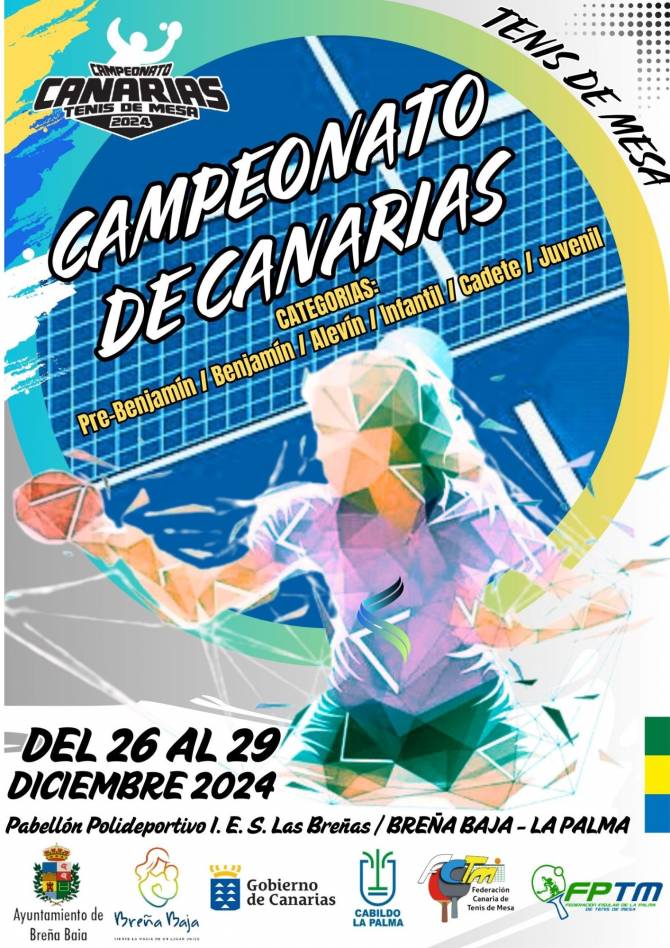 Del 26 al 29 de diciembre tendrá lugar el Campeonato de Canarias de Tenis de Mesa en el pabellón de deportes del I.E.S. “Las Breñas” para la categorías pre-benjamin, benjamin, alevin, infantil, cadete y juvenil.
