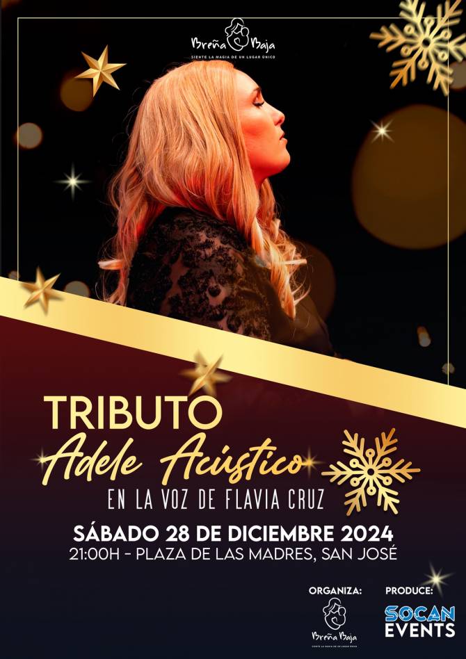 El sábado 28 de diciembre a las 21 hs en la Plaza de Las Madres de San José, Tributo “Adele Acústico” en la voz de Flavia Cruz. Organiza el Ayuntamiento de Breña Baja. Produce Socan Events. Entrada Libre.