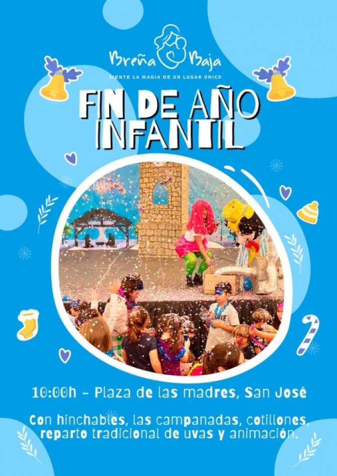 El martes 31 de diciembre a las 10.00 hs, en la Plaza de Las Madres de San José el Ayuntamiento de Breña Baja organiza una “Fiesta de Fin de Año Infantil 2024”