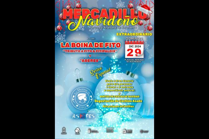 El colofón al último fin de semana de 2024 lo pondrá el Mercadillo Navideño Agrícola y Artesano en la que se disfrutará de una gran jornada desde las 10:00 hasta las 14:00 horas, en la que el público asistente podrá encontrar una amplia variedad de productos locales, desde alimentos frescos hasta artesanías elaboradas por los productores y artesanos de la región. Esta iniciativa estará musicalmente ambientada con la actuación de "La Boina de Fito", un tributo a los grandes éxitos de "Fito & Fitipaldis" y "Aseres", contará además con atracciones infantiles para los más pequeños y grandes sorpresas.