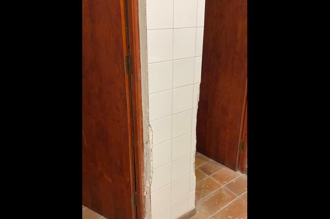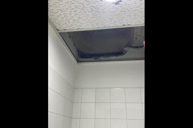 Castro ha destacado que la sala de estudio está separada por armarios, una solución que demuestra una falta total de planificación. Además, los baños presentan daños graves, con paredes y techos caídos, lo que pone en riesgo a quienes los utilizan. "Es increíble que el papel higiénico esté colgado de una cinta porque ni siquiera hay dispensadores en condiciones", señaló.