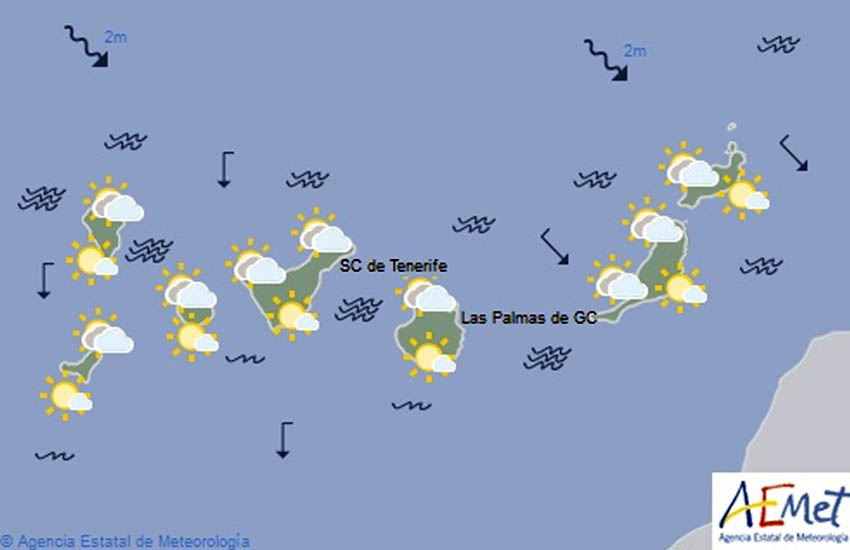 Las previsiones meteorológicas apuntan a que los cielos de La Palma estarán este sábado nuboso en las costas Norte y Este, abriendo amplios claros en horas centrales, y poco nuboso o despejado en el resto.